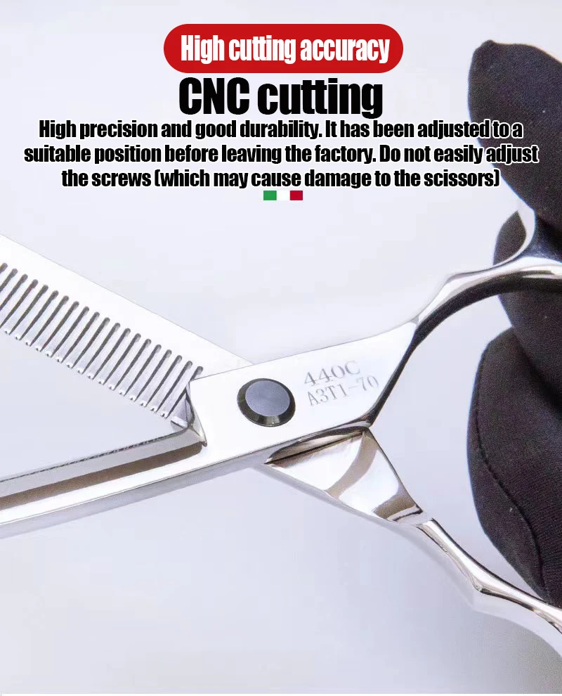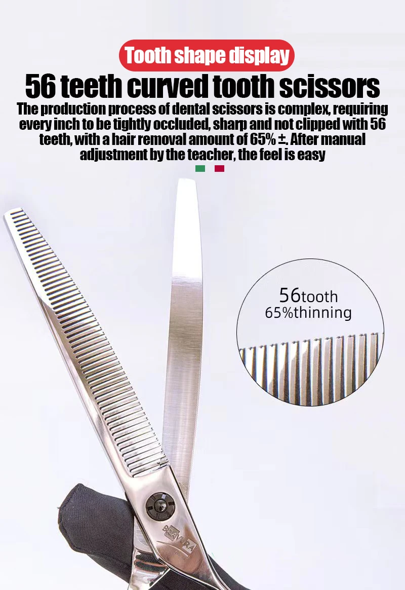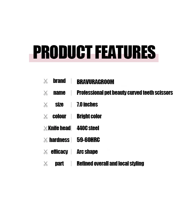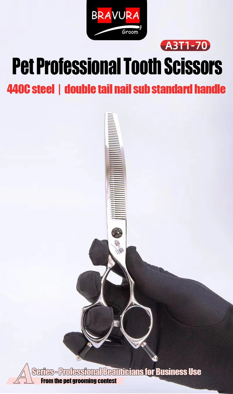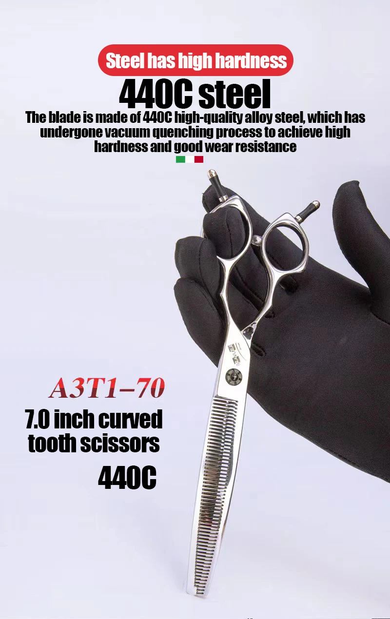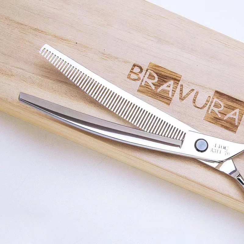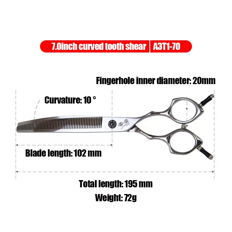 This A3T1-70 Pet Curved Tooth Scissors is a professional grooming tool designed specifically for dogs and cats, ensuring a smooth and efficient hair trimming experience.