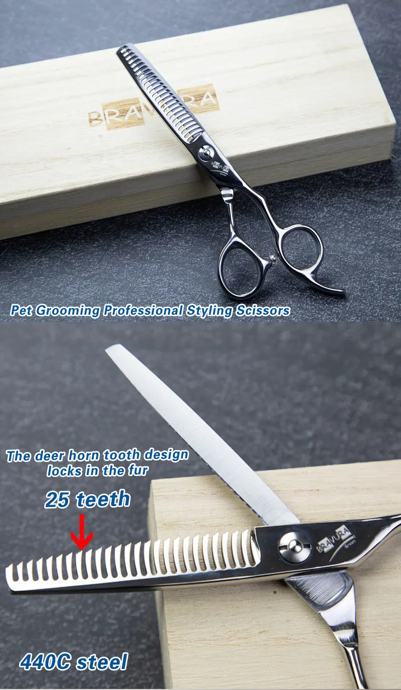 BAVURA 7-Inch Professional Dog Grooming Scissors High-End Hair Thinning & Finishing Tool for Dogs And Cats