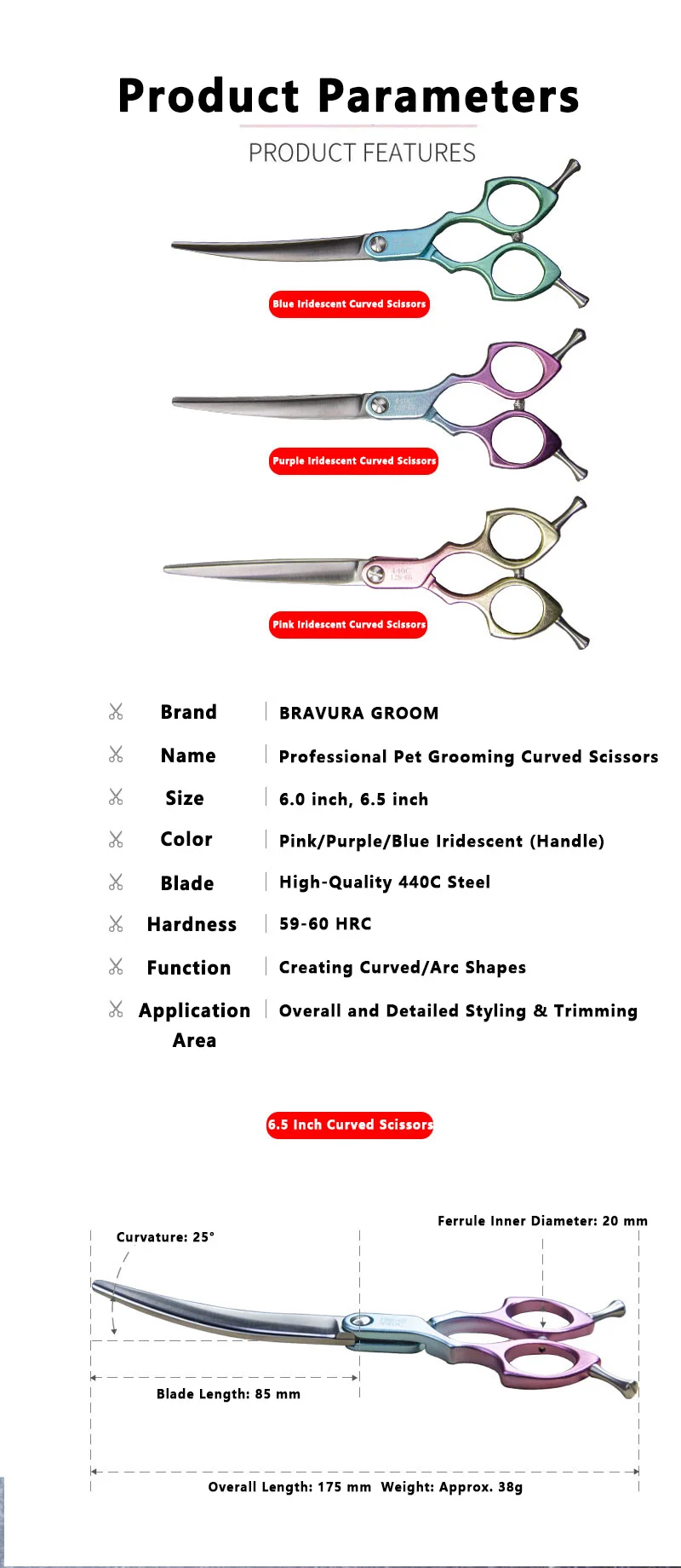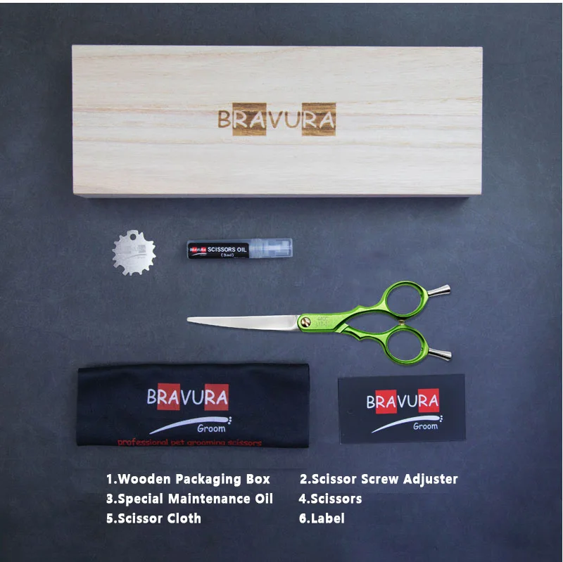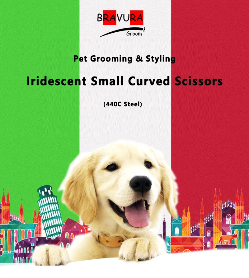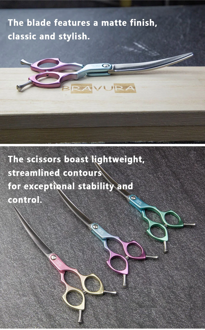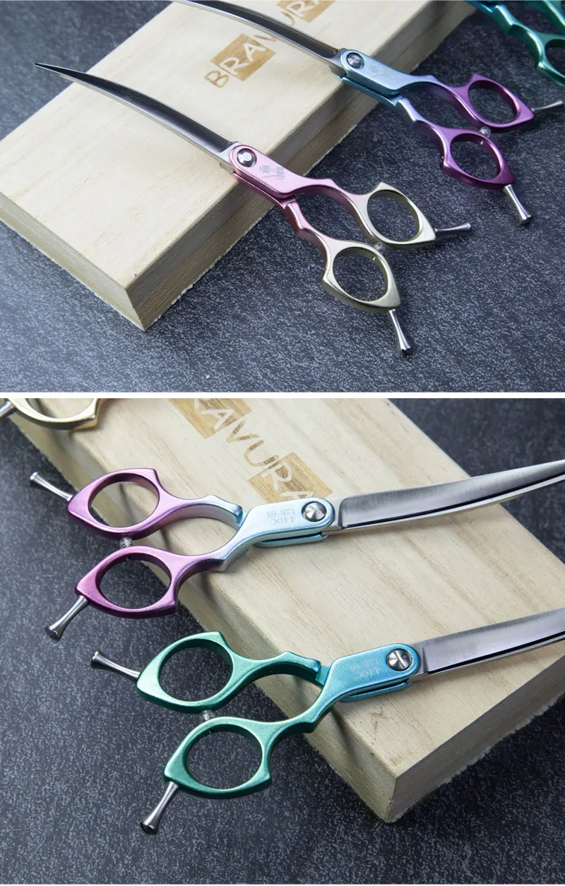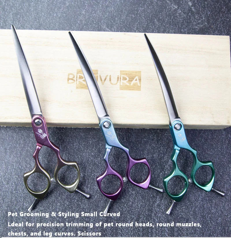 Bravura 440C 6.5-inch Colorful Pet Grooming Curved Scissors - Ultra-Light for Dog Face Trimming